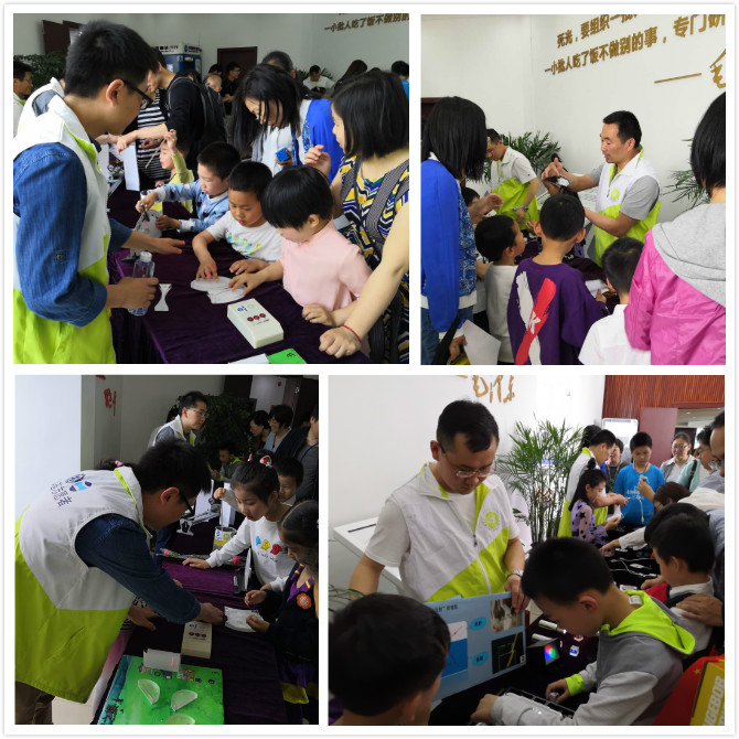 科爸科妈们走出实验室穿上科普志愿者服装,当一回科技老师,带领科二代体验各种光学科普趣味互动小实验,一起探索神奇的激光世界。