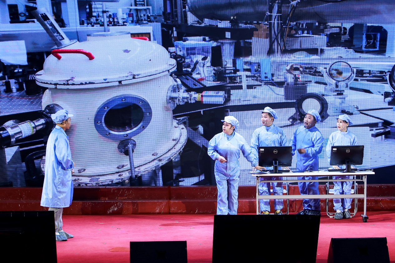 文艺汇演第一篇章以“岁月如歌,铭记初心砥砺行”为主题,由上光一线科研人员和职工子女演绎的原创科学家精神舞台剧《三地聚疁,地灵人杰》,生动再现了上海光机所从创立到壮大的艰辛历程,让观众仿佛穿越回那个激情燃烧的年代。随后,机关和杂志社分工会合唱《一路追光》和《没有共产党就没有新中国》激昂高亢,表达了上光人对党的热爱和对祖国的深情厚谊。职工子女参演的幼儿舞蹈《蛙趣》活泼可爱,为文艺汇演增添了一抹亮色。最后,空天部分工会带来的合唱《太空进行曲》和《不忘初心》将观众带入浩瀚的宇宙,感受中国航天事业的辉煌成就。