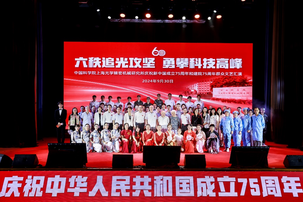 山河披锦绣,盛世谱宏篇。在这举国欢庆的热烈气氛中, 9月30日,中国科学院上海光机所举行“六秩追光攻坚 勇攀科技高峰”庆祝新中国成立75周年和中国科学院建院75周年群众文艺汇演活动,展示上光人在抢占科技制高点中的饱满精气神。