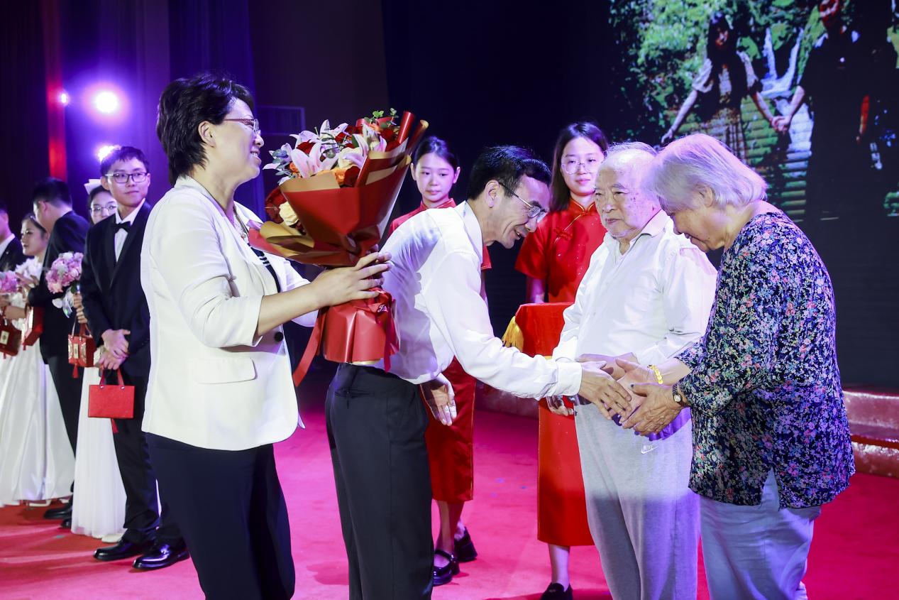 嘉定区委常委顾惠文、上海光机所副所长张龙,也为王院士夫妇“白金婚”送上了鲜花祝福。