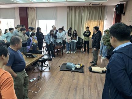 在实操方面,活动邀请了孔亮工程师给大家现场介绍了AED自动体外除颤器的作用和使用操作方法。卢其明介绍了常见火灾发生的因素及自救要点,强调了冬季用电安全要求,详细地讲解并示范CO2和干粉灭火器的使用方法。